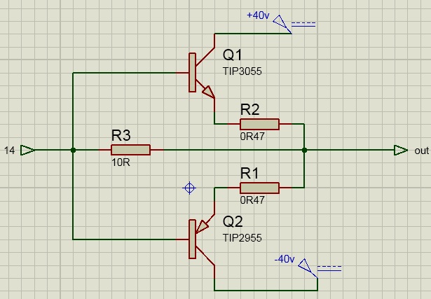 راه حل اول : بیایم و کلکتورای ی جفت ترانزیستور رو مستقیم بدیم به ولتاژ های مثبت و منفی و بیسهارو مستقیم به خروجی ایسی (پایه 14 ) و کلکتور هارو با یک مقاومت کنترل جریان به عنوان خروجی در نظر بگیریم