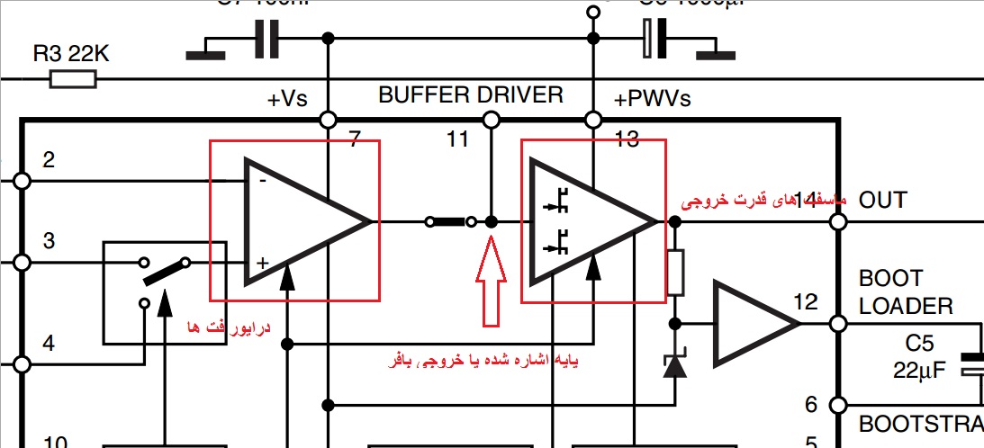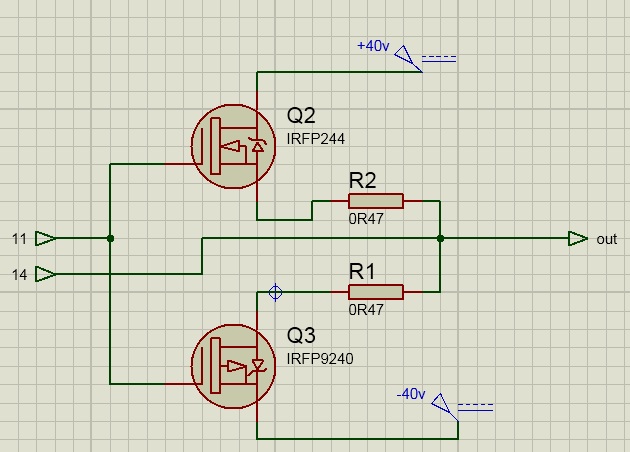ایبار گیت های ماسفت رو بجای خروجی (پایه 14) با این پایه (پایه 11 ) تحریک میکنیم.