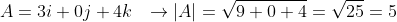 اندازه بردار A را با توجه به رابطه زیر محاسبه میکنیم :